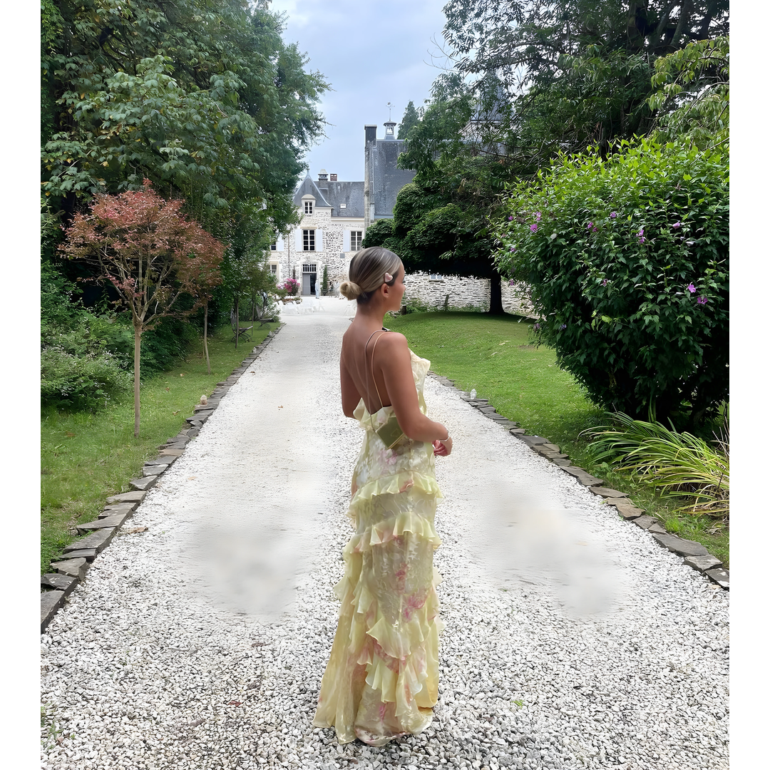 Orlina | Dames Maxi Jurk | Met Ruches Open Rug